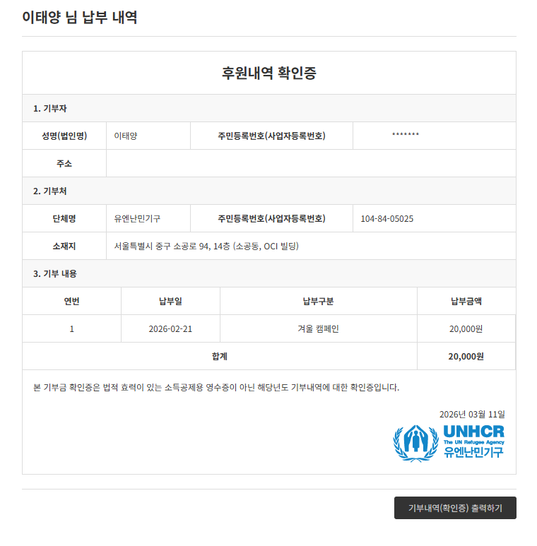 기부자(=납입자)가 통장 출금을 기준으로 하니까