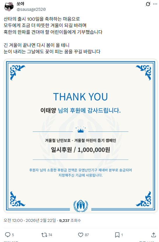 겨울철에 힘든 이웃들에게 사용되길 바람